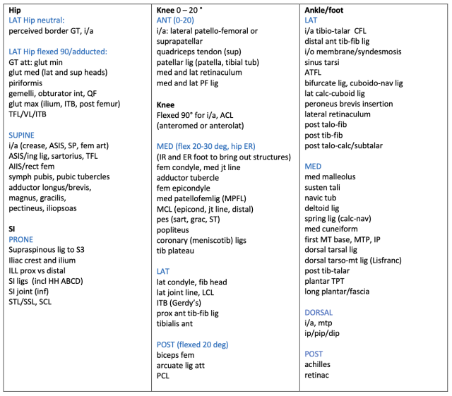 1:20 – 3:00 pm Anatomy Lab: Prone structures – Sacroiliac joint, Scapular and posterior shoulder structures, hindfoot and plantar foot